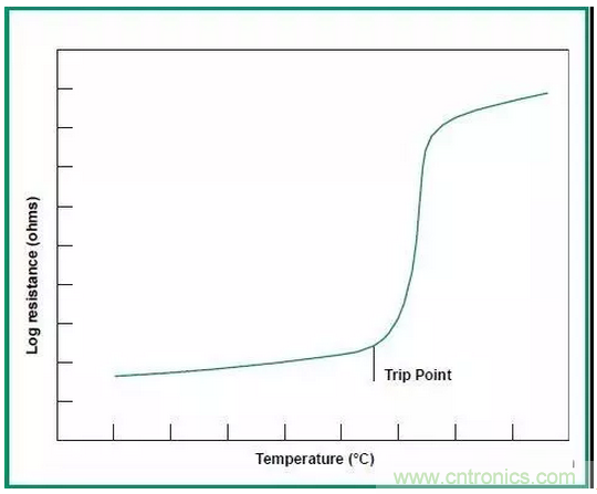 上圖是PTC的阻抗溫度特性,當過流的時候PTC發熱,溫度迅速上升,PTC的阻抗迅速變大,形成斷路,斷路後電流下降,發熱減少,溫度下降,PTC恢複低阻抗。因此,PTC非常適合短時過流。