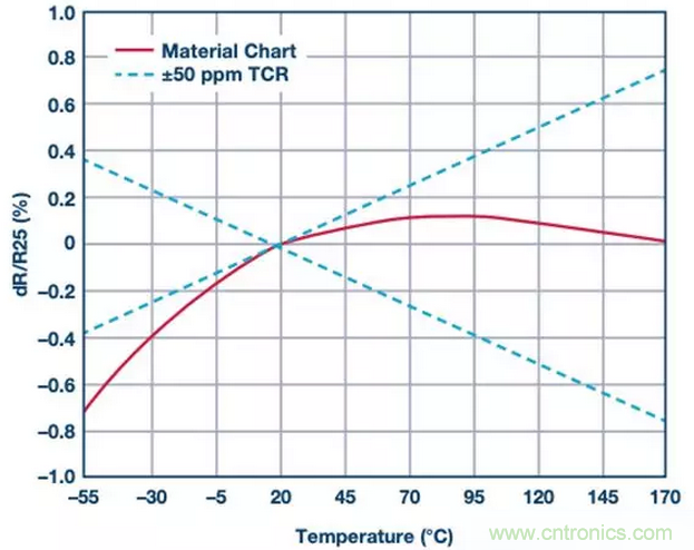 圖2. Bourns CSS4J-4026R型電流檢測電阻的拋物線形TCR曲線