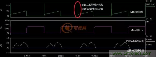 其次反激變壓器在連續模式下其輸出二極管有反向恢複問題,見下圖: