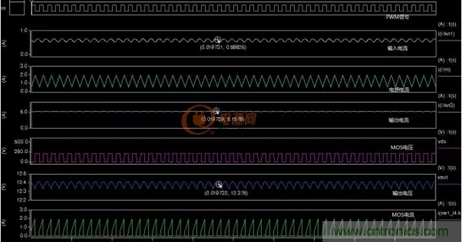 將電路的的參數稍作修改可以實現連續模式的PFC,見下圖仿真: