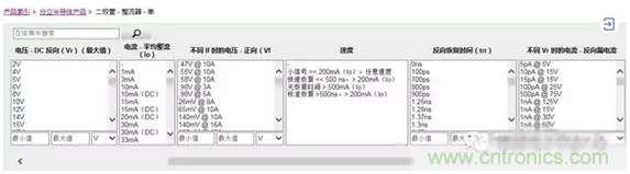 在Digi-Key網站,可以根據不同二極管類型及設計參數的要求,篩選合適的二極管。