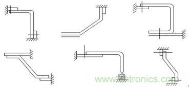 (6)與電器元件搭接的母排,應避免銳角彎折,製作彎曲角度一般不小於90度,見下圖。
