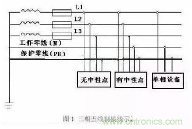 在三相五線製的供電係統中,L1、L2、L3為供電的相線(火線)、工作零線N、保護地線PE,相線提供高電勢、零ling線xian和he地di線xian提ti供gong零ling電dian勢shi點dian,當dang相xiang線xian與yu零ling線xian或huo地di線xian接jie通tong形xing成cheng回hui路lu後hou,會hui產chan生sheng電dian流liu。而er產chan生sheng的de電dian流liu也ye分fen為wei正zheng常chang工gong作zuo的de工gong作zuo電dian流liu和he相xiang線xian接jie地di後hou產chan生sheng的de接jie地di故gu障zhang電dian流liu,工gong作zuo電dian流liu是shi保bao證zheng設she備bei正zheng常chang工gong作zuo的de,而er接jie地di故gu障zhang電dian流liu是shi相xiang線xian絕jue緣yuan不bu好hao或huo者zhe人ren身shen觸chu電dian後hou產chan生sheng的de。