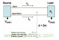 圖1:電路回路中的共模電流。電路中的源是一個數字信號(帶諧波),qifuzaibeijiadingweizuxing。yinweiyuanduandaoxianshangdexiangdianliuhejinduandaoxianshangdexiangdianliudeliuxiangshixiangtongde,suoyiqihechengxiangliangxiangjiaoyuchamodianliuchanshengdexianglianghuigengda。zaizhezhongqingkuangxia,weilexianzhifushefashedeshuiping,jiangdixiebochengfendedaxiao(減慢數字信號的上升/下降時間)或者轉移/限製共模電流是非常重要的。