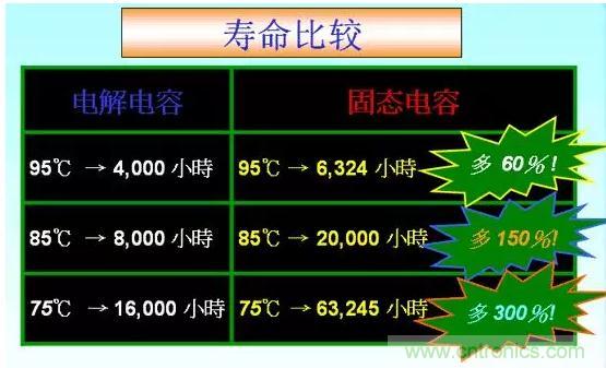 電dian解jie電dian容rong地di電dian介jie質zhi為wei液ye態tai電dian解jie液ye,液ye態tai粒li子zi在zai高gao溫wen下xia十shi分fen活huo躍yue,對dui電dian容rong內nei部bu產chan生sheng壓ya力li,它ta地di沸fei點dian不bu是shi很hen高gao,因yin此ci可ke能neng會hui出chu現xian爆bao漿jiang地di情qing況kuang,固gu態tai電dian容rong采cai納na使shi用yong了le高gao分fen子zi電dian介jie質zhi,固gu態tai粒li子zi在zai高gao溫wen下xia,無wu論lun是shi粒li子zi澎peng漲zhang或huo是shi活huo躍yue性xing均jun較jiao液ye態tai電dian解jie液ye低di,它ta地di沸fei點dian也ye高gao達da攝she氏shi350度,因此幾乎不可能出現爆漿地可能性。