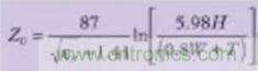 用於帶狀線的特征阻抗計算公式如(公式七)所示: