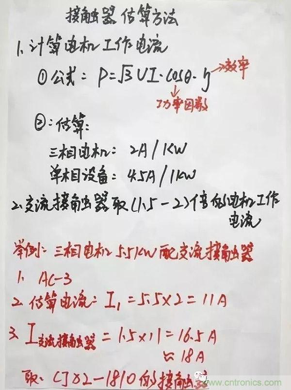一,首先我們需要根據電動機的功率來計算工作電流。在這裏提供兩個方法如圖所示: