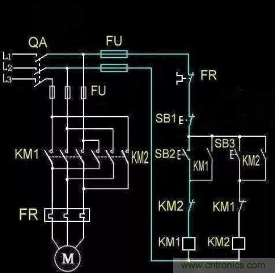2,三相電動機正反轉控製電路。