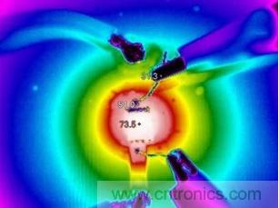 將10cmX10cm的二層PCB板的覆銅改為1OZ,重複上麵實驗,測量的溫度如下圖所示。