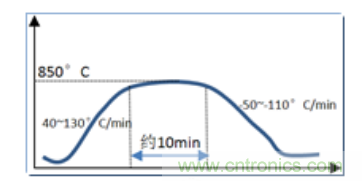Ag/Pd膏—> 140°C /10min,將Ag/Pd膏中的有機物及水分蒸發—> 850°C /35min 燒結成型
