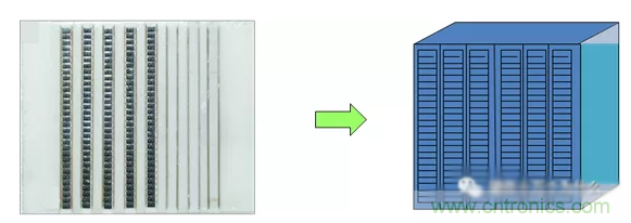 【製造方式】用折條機按照基板上原有的分割痕將基板折成條。
