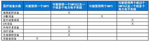 表2 電子醫療設備中SMPS和其他電力電子係統的使用