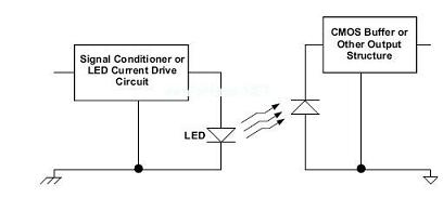 光耦合技術是在透明絕緣隔離層(例如:空氣間隙)上的光傳輸,以達到隔離目的。圖5顯示了一款數字隔離器的主要組件。該電流驅動器采用數字輸入,並將信號轉換為電流來驅動發光二極管(LED)。輸出緩衝器將光電探測器的電流輸出轉換為一個數字輸出。