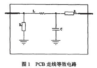 信號完整性主要有反射、振鈴、地彈和串擾等現象。PCB板上的走線可等效為圖1所示的串聯和並聯的電容、電阻和電感結構。串聯電阻的典型值0.25D./R-4)。55DJft,並聯電阻阻值通常很高。將寄生電阻、電容和電感加到實際的PCB連線中之後,連線上的最終阻抗稱為特征阻抗zo。