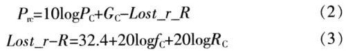 設發射係統的發射功率為Pc,單位為W;發射天線增益為Gc,單位為dB;發射距離為Rc,單位為km;信號傳輸損耗為Lost_r_R,單位為dB;信號頻率為fc,單位為MHz。發射信號到達接收係統的功率為: