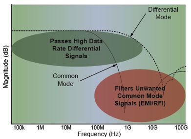第二類EMI濾lv波bo器qi適shi用yong於yu高gao速su串chuan行xing接jie口kou,功gong能neng超chao過guo了le典dian型xing低di通tong濾lv波bo器qi。這zhe類lei接jie口kou是shi具ju有you固gu有you噪zao聲sheng抑yi製zhi的de差cha分fen信xin號hao路lu徑jing,但dan不bu會hui完wan全quan免mian疫yi來lai自zi外wai部bu源yuan的de共gong模mo噪zao聲sheng,或huo阻zu止zhi來lai自zi輻fu射she到dao係xi統tong其qi他ta部bu分fen的de接jie口kou信xin號hao。