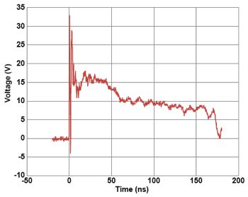 安森美半導體的ESD鉗位性能備受業界推崇,鉗位性能可從幾種方法觀察和量化。使用幾個標準工具即可測量獨立ESD保護器件或集成器件的ESD鉗位能力,包括ESD保護功能。第一個工具是ESD IEC61000-4-2 ESD脈衝響應截圖,顯示的是隨時間推移的鉗位電壓響應,可以看出ESD事件中下遊器件的情形。