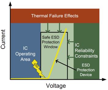 另外,先進的係統級芯片(SoC)設計都是采用幾何尺寸很小的工藝製造的。為了優化功能和芯片尺寸,IC設計人員一直在不斷減少其設計的功能的最小尺寸。IC尺寸的縮小導致器件更容易受到ESD電壓的損害。