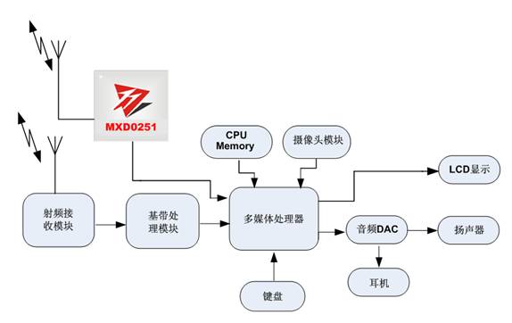 圖1:基於MXD0251的CMMB移動數字電視終端係統架構。