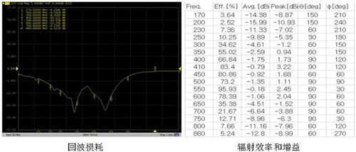 在結構上確定好天線後,需要做天線的匹配調試。天線匹配的目的是減少信號反射,提高信號傳輸效率。對於UHF接收頻段,建議天線匹配電路預留一個Π型的網絡。良好的天線匹配應使得在工作頻段內,回波損耗小於-6dB, 天線整體的平均增益大於-4dBi,平均輻射效率大於40。再根據有源測試的結果做數據分析,以確定是否需要再修改天線匹配,以真正實現匹配的共軛,或有目的地優化某個頻段的性能。