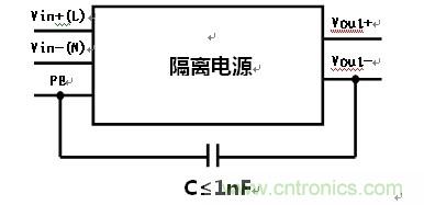 那麼,如果隔離電源在應用過程中一定要進行輸出Vout-連接到PE端duan,可ke以yi按an照zhao上shang圖tu的de連lian接jie思si路lu,通tong過guo電dian容rong將jiang這zhe兩liang個ge端duan子zi進jin行xing連lian接jie,這zhe樣yang設she計ji保bao證zheng了le客ke戶hu特te殊shu使shi用yong要yao求qiu的de同tong事shi,對dui於yu上shang述shu問wen題ti也ye能neng夠gou有you效xiao的de規gui避bi。