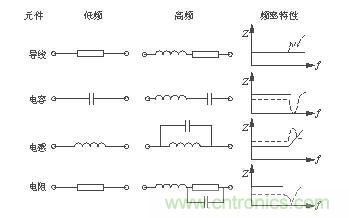 如圖4所示,在高頻工作下的元件都有高頻寄生特性[2],對其工作狀態產生影響。高頻工作時導線變成了發射線、電容變成了電感、電感變成了電容、電阻變成了共振電路。觀察圖4中(zhong)的(de)頻(pin)率(lv)特(te)性(xing)曲(qu)線(xian)可(ke)以(yi)發(fa)現(xian),當(dang)頻(pin)率(lv)過(guo)高(gao)時(shi)各(ge)元(yuan)件(jian)的(de)頻(pin)率(lv)特(te)性(xing)產(chan)生(sheng)了(le)相(xiang)當(dang)大(da)的(de)變(bian)化(hua)。為(wei)了(le)保(bao)證(zheng)開(kai)關(guan)電(dian)源(yuan)在(zai)高(gao)頻(pin)工(gong)作(zuo)時(shi)的(de)穩(wen)定(ding)性(xing),設(she)計(ji)開(kai)關(guan)電(dian)源(yuan)時(shi)要(yao)充(chong)分(fen)考(kao)慮(lv)元(yuan)件(jian)在(zai)高(gao)頻(pin)工(gong)作(zuo)時(shi)的(de)特(te)性(xing),選(xuan)擇(ze)使(shi)用(yong)高(gao)頻(pin)特(te)性(xing)比(bi)較(jiao)好(hao)的(de)元(yuan)件(jian)。另(ling)外(wai),在(zai)高(gao)頻(pin)時(shi),導(dao)線(xian)寄(ji)生(sheng)電(dian)感(gan)的(de)感(gan)抗(kang)顯(xian)著(zhu)增(zeng)加(jia),由(you)於(yu)電(dian)感(gan)的(de)不(bu)可(ke)控(kong)性(xing),最(zui)終(zhong)使(shi)其(qi)變(bian)成(cheng)一(yi)根(gen)發(fa)射(she)線(xian)。也(ye)就(jiu)成(cheng)為(wei)了(le)開(kai)關(guan)電(dian)源(yuan)中(zhong)的(de)輻(fu)射(she)幹(gan)擾(rao)源(yuan)。