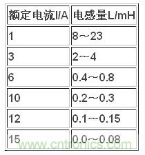 表1 電感量範圍與額定電流的關係[4]
