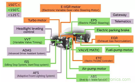 圖2:汽車內需要高溫保證的電裝設備