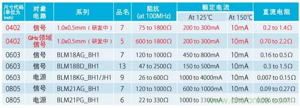 1) 高溫保證片狀鐵氧體磁珠的產品陣容