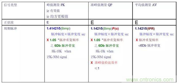 【導讀】最近一個重要客戶的機器測試分別要求測試QP,AV和PK(測試項是EN55022的傳導輻射CE),問起這幾個值之間的數值關係。PK QK AV的區別在於檢波器的RC參數,公式是對標準的理想正弦信號而言。在電磁兼容測試工程實踐中,時變的信號目前是沒有公式去算的。