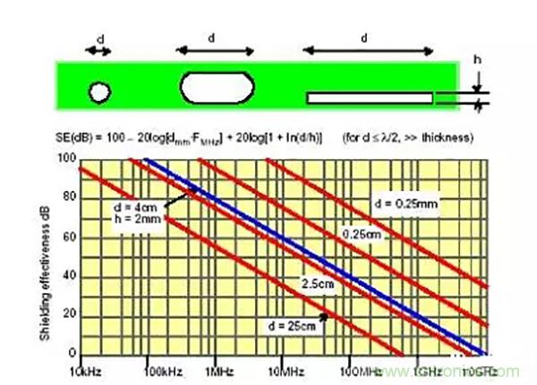 b、避免開細長孔,通風孔盡量采用圓孔並陣列排放。屏蔽和散熱有矛盾時盡可能開小孔,多開孔,避免開大孔;