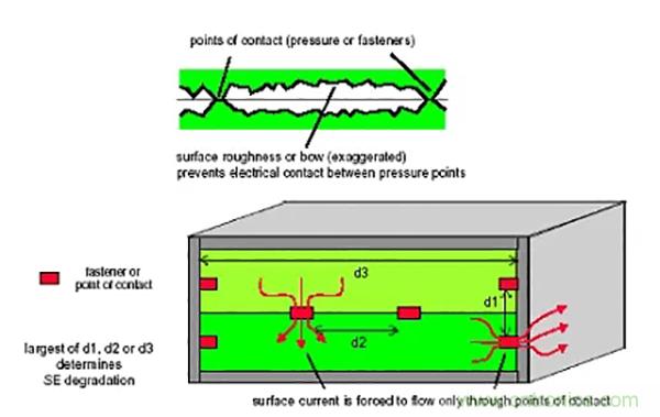 d、屏蔽體的電連續性是影響結構件屏蔽效能最主要的因素,相對而言,一般材料本身屏蔽性能以及材料厚度的影響是微不足道的(低頻磁場例外);