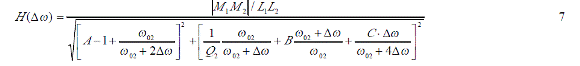 如果實際工作角頻率與待測諧振角頻率間的角頻率差 Δω控製在遠小於 ω02,這樣可以無視 Δω的高次項,式5可以作進一步簡化。