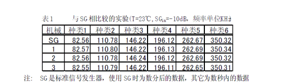 根據本文中所推出的原理試作了LC諧振頻率測試機分別對6個種類LC諧振體樣本(產品)進行測試。本LC諧振測試機已應用在6個種類LC諧振體的生產和產品檢驗上。具體結果參照表1和表 2。