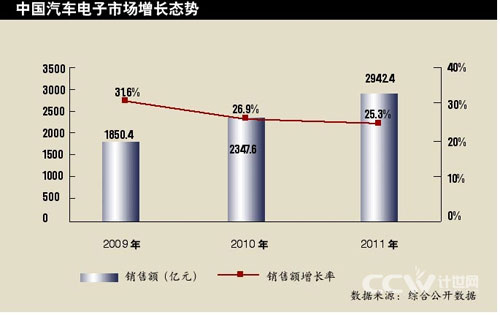 “在前裝市場中,汽車增加一套帶‘DVD+GPS’功能的電子產品要花兩三萬元,而在後裝市場買一套產品隻需兩三千元,差了十幾倍!”沐先生感慨道。2009年中國汽車電子產業規模預計達到1484.3億元,2012年則超過3200億元;而後裝市場僅有幾十億元到幾百億元的規模,增長率最多不過40%。