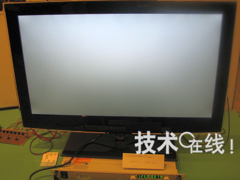 端麵照光型LED背照燈的調光工作狀態。 32英寸電視的功耗為9.9W(論文編號DES2-3)。LED的位置共有6處,上下側各兩處,左右和中間各一處。屏幕上部較亮,下部較暗。采用這種背照燈時,僅中央部分(麵積10%左右)的圖像較亮