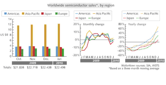 Semiconductor International 全球1月半導體的銷售額數據出籠,讓分析師們的眼睛一亮,紛紛提高2010年的預測。為什麼如此迫不及待,值得思考。