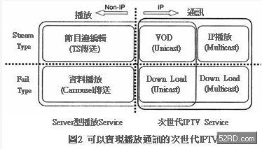 次世代IPTV服務針對各影像傳送服務,擴大高品質(從SDTV一直到HDTV)與擴大數量龐大的節目服務區(servicearea)管理,對多數加入者提供更經濟的節目傳輸效益(圖1)。