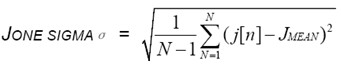 抖動的有效值(即RMS值)為所有樣本的1個Sigma值,即: