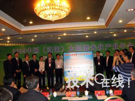 在2009年4月28日舉行的中國(洛陽)太陽能光伏產業年會上,尚德太陽能電力控股(Suntech Power Holdings)、英利集團(Yingli Group)、晶澳太陽能(JA Solar Holdings)、洛陽中矽高科技、重慶大全等13家中國太陽能電池製造大廠商注)齊聚一堂,通過了名為《推動光伏發電“一元工程”建設倡議書》的“洛陽宣言”。宣言中稱,整個業界將團結一致,力爭在2012年使太陽能發電成本實現1元/kWh。這一目標達成的話,在中國便可實現“市電同價”(Grid Parity,太陽能電池發電的成本與電價相等),從而催生出巨大的國內市場。
