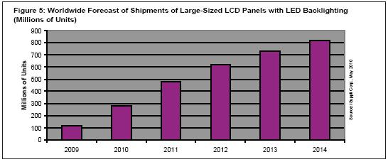- 預計2010年大尺寸LED背光液晶麵板出貨量將達2.767億台