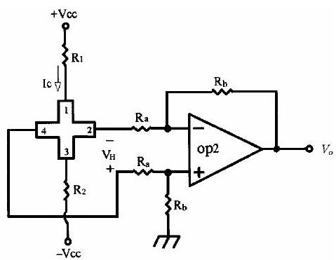 磁場強度可利用形成在結晶片的一部份的霍爾組件變換成電氣信號(參照前述霍爾組件的作用原理)。結晶通常使用半導體矽,霍爾組件的磁場靈敏度為10~20mV/K.Oe。cixinhaojingxingchengzaitongyijiejingzhongdexinhaochulidianlufangdahou,zuoweishihesuodingmudedexinhaodianyabeiquchu。tongchangsigendaoxianzhongdelianggenlianjieyuyifangjiedidedianyuan,ercongshengxiadelianggendeyigenquchuzhengjixingdexinhaodianya,bingconglingyigenquchufujixingdexinhaodianya。huoerzujiandeshurudianzutongchangxufuhexinhaochulidianludedianyuan,yibiankeliyongdingdianyashiyonghuoerzujian。cishizujiandeshuchudianyabuguanzaiN型或P型均無大差異。又因輸出電壓與電子或正孔的移動度成正比,故溫度特性也應該盡量保持一定,這是與單體霍爾組件不同的地方。