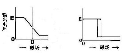 開關型霍爾集成電路可在一定範圍的磁場中獲得ON-OFF的電壓,此開關型對磁場的磁滯(Hysteresis)現象,乃是為使開關動作更為霍爾集成電路線性型確實起見而故意如此設計的。