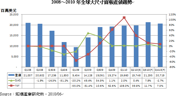 - 2010年全球各季麵板產值穩定