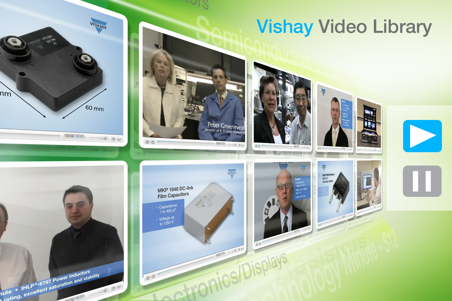 為幫助用戶更高效地瀏覽近期改版的Vishay網站,登錄頁麵上專門提供了3條介紹如何從vishay.com上獲取最多信息的視頻。