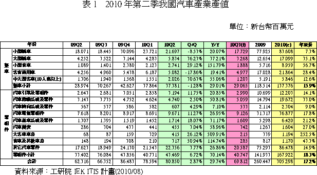 2010年第二季我國汽車產業回顧與展望