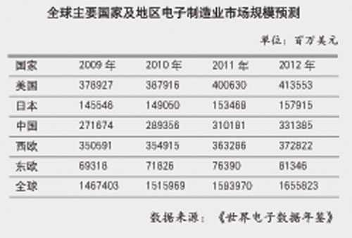 2010年是產業複蘇和市場擴張的一年,據統計,1月~5月規模以上電子信息製造業主要銷售產值增值30.6%,出口交貨值31.7%。我國電子信息產品的進出口額達到3677億美元,同比增長43.1%,占全國外貿進出口總額的33.4%。電子元件、電子器件、電子專用設備這三個行業出口增速明顯高於全行業平均水平。