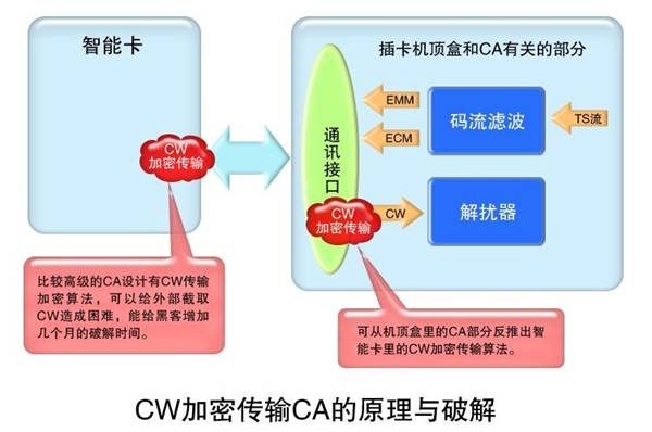 2、和算法密鑰溝通的通訊及命令接口,就是將機頂盒接收到的ECMsongdaosuanfabufen,genjusuoyinqudeduiyingdemiyaojinxingjiemi。tongxunjiekoushikaojinmiyaohesuanfazuijindebufen。zaitongxunjiekoubeipojiezhihou,keyihuodezugoudemingwenCW和密文ECM對,有利於采取團隊合作的方式用碰撞法獲得密鑰,這對於采取密鑰保密措施的數字電視CA威脅很大。另一方麵,黑客可以利用已經被破解的通訊接口,對智能卡裏的算法進行更進一步的攻擊。