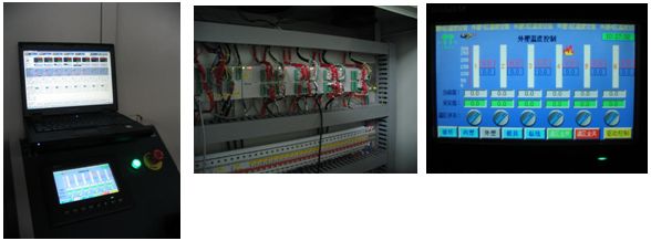由於有一定數量的溫控,采用了體積較大的電控櫃;本ben溫wen控kong係xi統tong采cai用yong了le報bao警jing方fang式shi啟qi動dong筒tong體ti上shang的de冷leng卻que風feng機ji。報bao警jing方fang式shi具ju有you驅qu動dong快kuai,響xiang應ying明ming顯xian等deng特te點dian。但dan是shi也ye有you溫wen度du控kong製zhi不bu穩wen定ding的de缺que點dian。由you於yu采cai用yong的de定ding點dian溫wen度du啟qi動dong,完wan全quan忽hu略lve了le溫wen控kong係xi統tong中zhong的de熱re慣guan性xing。遇yu到dao某mou些xie摩mo擦ca係xi數shu較jiao大da的de物wu料liao,也ye有you溫wen度du過guo衝chong的de現xian象xiang。溫wen控kong結jie構gou具ju體ti見jian圖tu2。