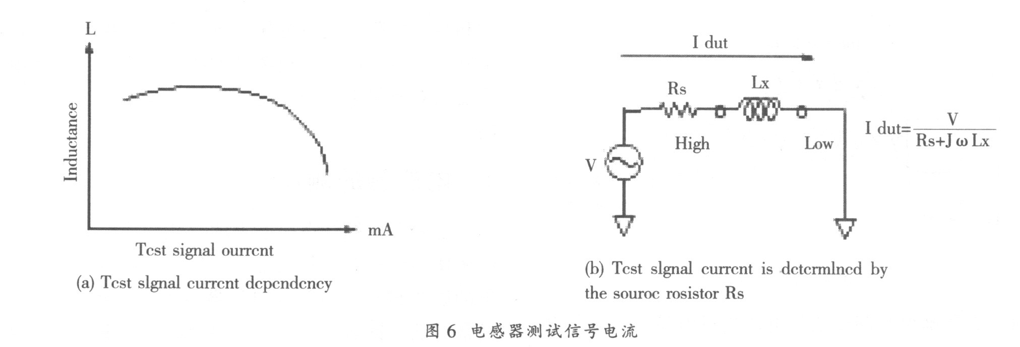 磁性電感器與測試信號電流的關係如圖6 (a)所示。電感量隨測量電流的大小而不同, 即使將兩台不同的儀器設置為同樣的輸出電壓, 如果它們的源阻抗不同, 它們的輸出電流也將不同, 請參考圖6 (b)。有些磁性電感器的電感量與流過電流的關係很大, dianliudebianhuakedaozhidianganzhichengbeidibianhua。womenduociyudaoyuanjianzhizaochangyuyuanjianshiyongchangjiadejiufenjiuyuanyuci。tamenyongbutongdeyiqiceliangtongyichanpindejieguoyouhendadebutong, 進而懷疑儀器有問題, 但儀器經過我們計量校準是合格的。其實就是因為儀器的源阻抗不同而導致通過測試件的電流不同, 測量結果當然也就不一致。因此一些高檔的LCR 表有電壓、電流監視器功能, 可監測實際加在測試件上的電壓及流過測試件的電流。